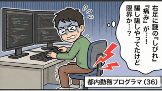 こんにちは。都内で働く36歳、現役プログラマです。今日はちょっと私の身体というハードウェアに発生した、深刻なトラブルについて共有させてください。無視し続けたエラーログ(右足の異変)事の発端は、最近感じていた右足の違和感でした。 謎の「しびれ」と、時折走る「痛み」。