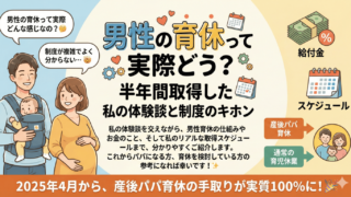 FAMILY / カワウソ家の日常 男性の育休って実際どう?半年間取得した私の体験談と制度のキホン はじめまして! 2024年、妻の産休・育休(1年+延長)に合わせて、私も半年間の育休を取得した一児のパパです。「男性の育... 2025.12.11 FAMILY / カワウソ家の日常育児