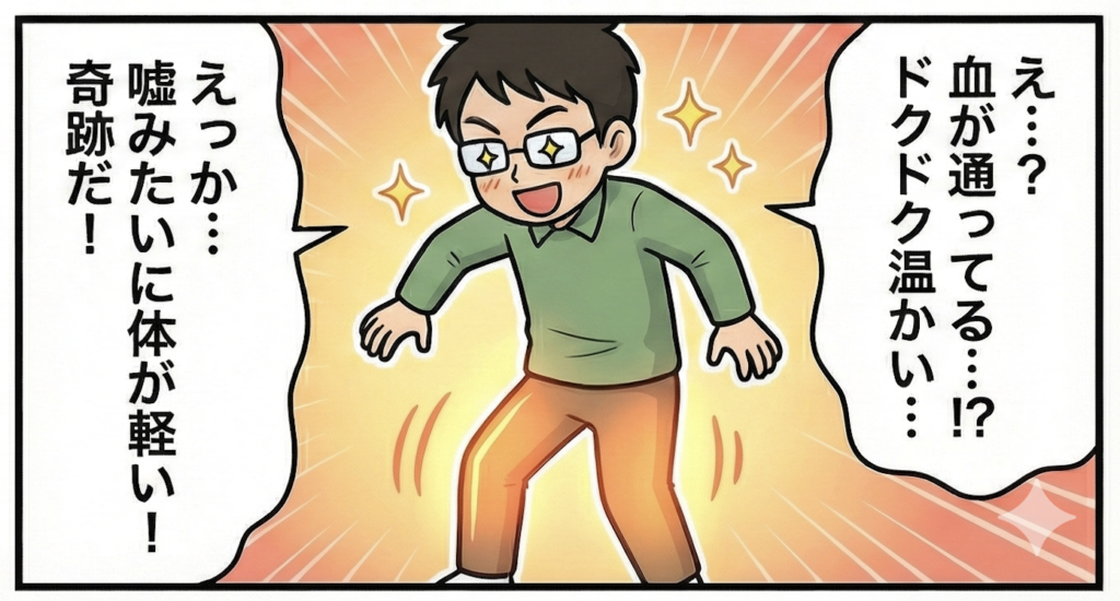 あんなにバリバリに固まって冷たくなっていた右足に、ドクドクと温かい血が巡る感覚が戻ってきました❤️