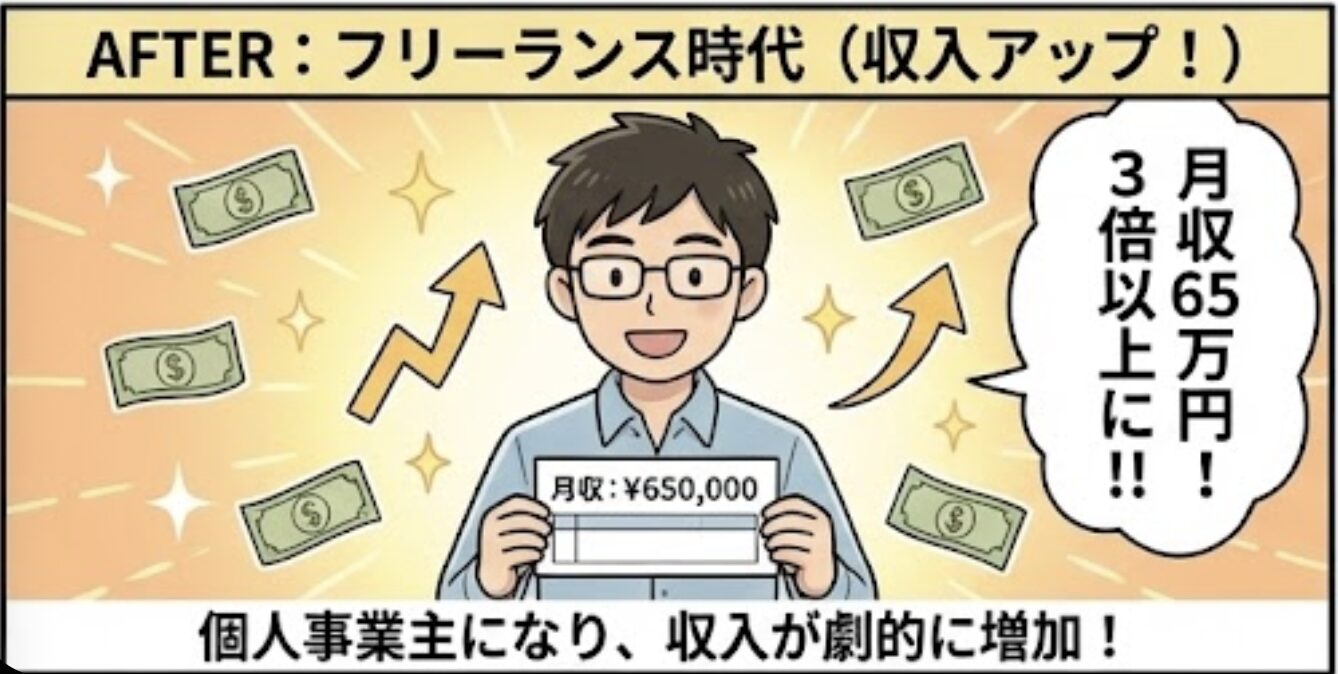 ところが、フリーランスとして契約を結んだところ、なんとひと月の報酬が65万円になったんです!😲 (この額は仲介業者さんと話して決めました)