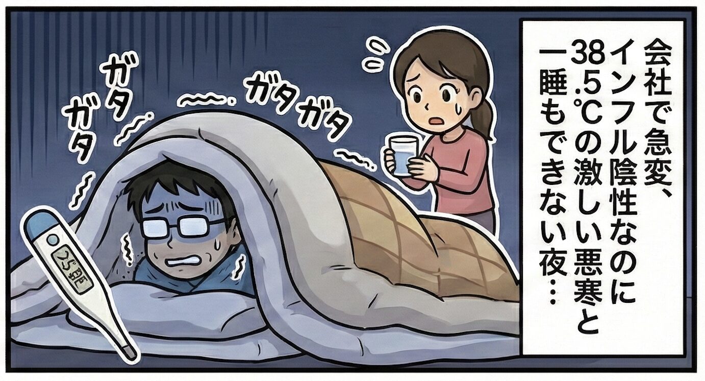 体にカイロを何枚も貼ってみましたが、それでも体の芯(しん)から震えるような寒気は止まりません。
