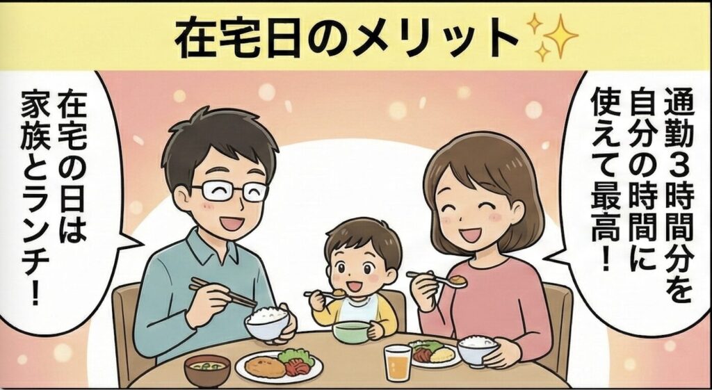 正直なところを言えば、もう1日増やして「週3日テレワーク」だとさらに嬉しいのですが…我が社の規定では週2回まで。そこはちょっと残念です😅。