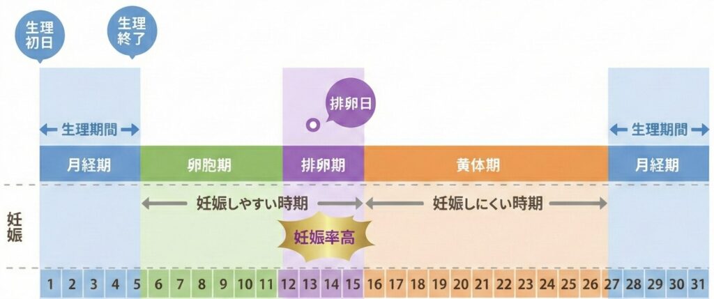 排卵日3日前から排卵日翌日にかけての性交渉が妊娠の確率を高めると言われています💡
